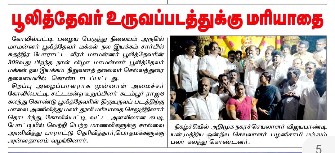 பூலித்தேவர் அவர்களின் 309 வது அகவை தின விழா