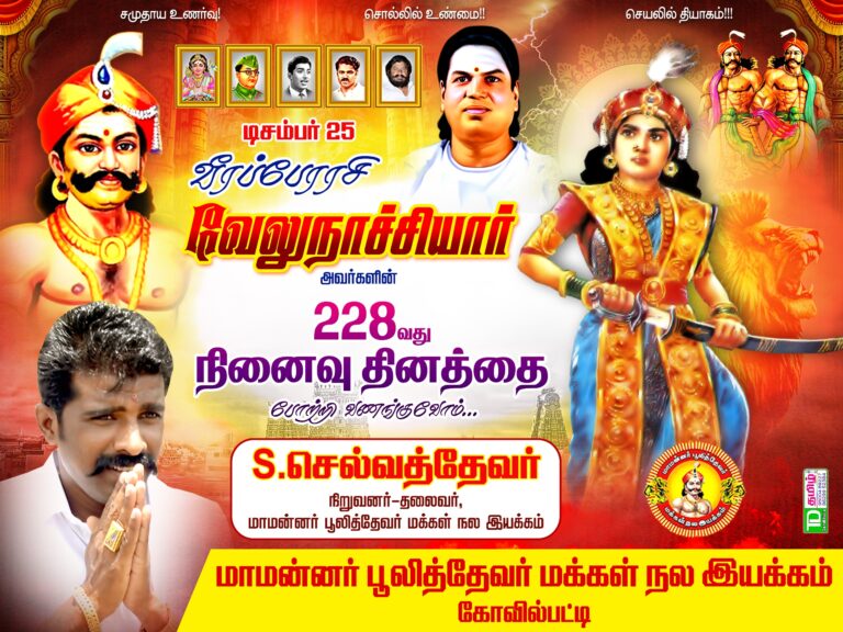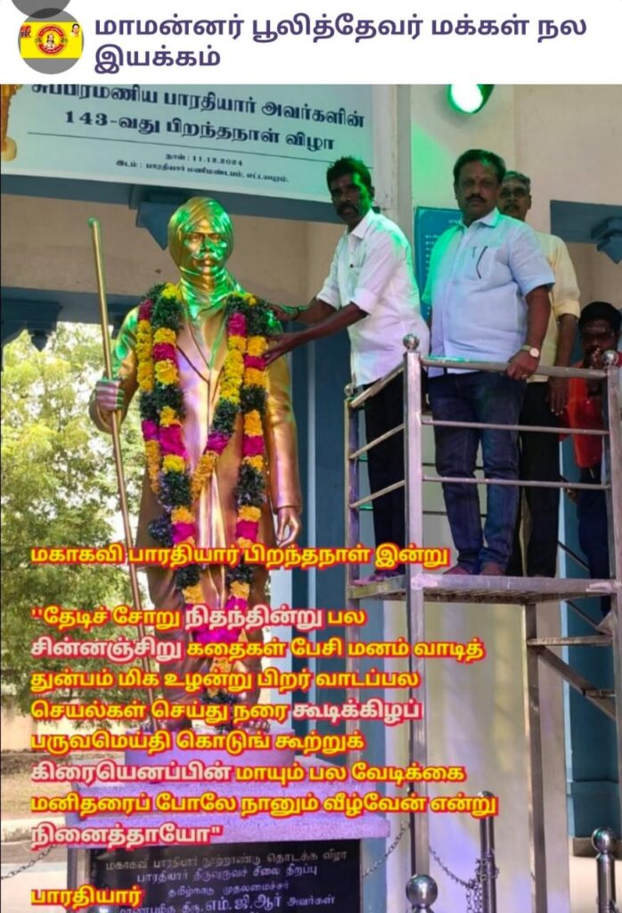 மகாகவி சுப்ரமணிய பாரதியார் அவர்களின் 143ஆவது பிறந்த நாள் விழா Previous Post பசும்பொன் முத்துராமலிங்கத் தேவர் 116வது ஜெயந்தி விழா பட தொகுப்புகள் Next Post கோவில்பட்டி: காந்திநகர் பகுதியில் உயிரிழந்த சிறுவனின் குடும்பத்திற்கு எம்எல்ஏ நேரில் ஆறுதல்